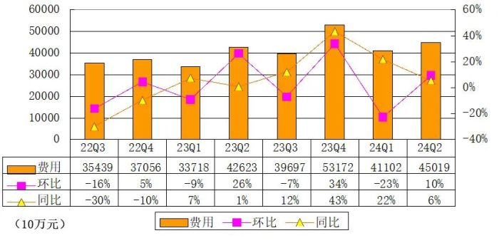 贝壳2024年第二季度总费用为45亿元(约6亿美元),较上年同期的43亿元增长5.6%。