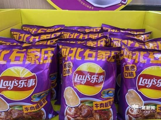 在石家庄销售的“牛肉板面”味道城市限定薯片。潮新闻记者 陶韬 摄