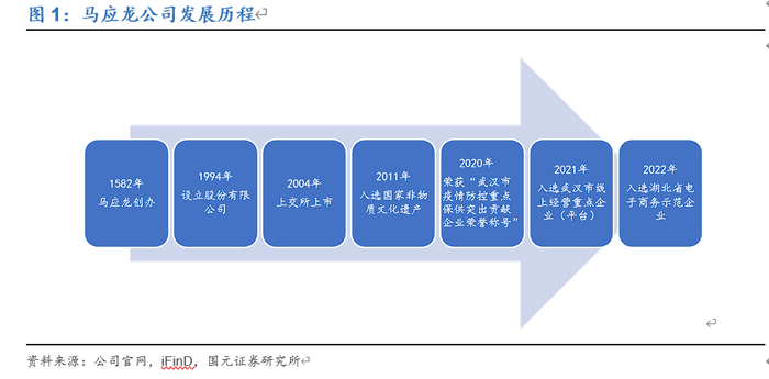 马应龙药业集团股份有限公司(股票代码:600993.SH)创始于公元1582年(明朝万历年间),是一家拥有442年历史的“中华老字号”,于1994年设立股份有限公司,并于2004年成功在上海证券交易所上市。马应龙药业集团股份有限公司(以下简称“公司”)以眼药起家,拥有八宝名方,即含有麝香、牛黄、琥珀、珍珠、冰片、炉甘石、硼砂、硇砂等八味中药,在此基础上公司不断创新并推出了一系列产品,如马应龙麝香痔疮膏、麝香痔疮栓、龙珠软膏和马应龙八宝眼霜等,涵盖膏、栓、口服、片剂、洗剂、中药饮片等多种形式,构建了以肛肠为核心、以眼科、皮肤等为支柱的产品格局。多年来,公司贯彻执行“目标客户一元化,服务功能多元化”的发展思路,形成了医药工业、医疗服务、医药商业、大健康的多领域立体产业结构布局。