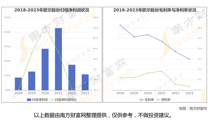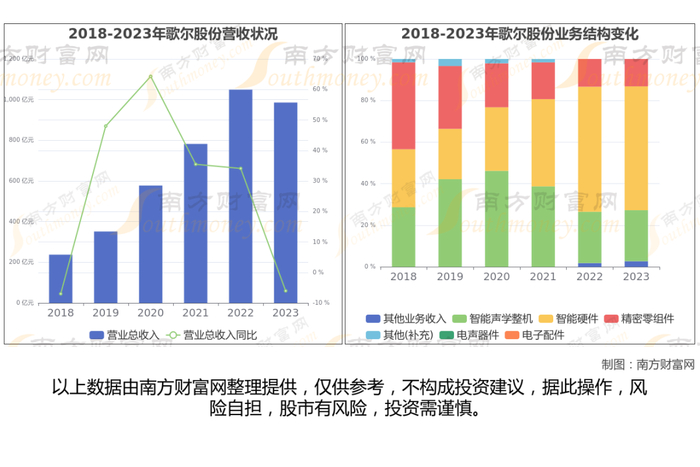 歌尔股份于2008年5月22日在深圳证券交易所上市,股票代码002241。公司主营业务为精密零组件业务、智能声学整机业务和智能硬件业务。