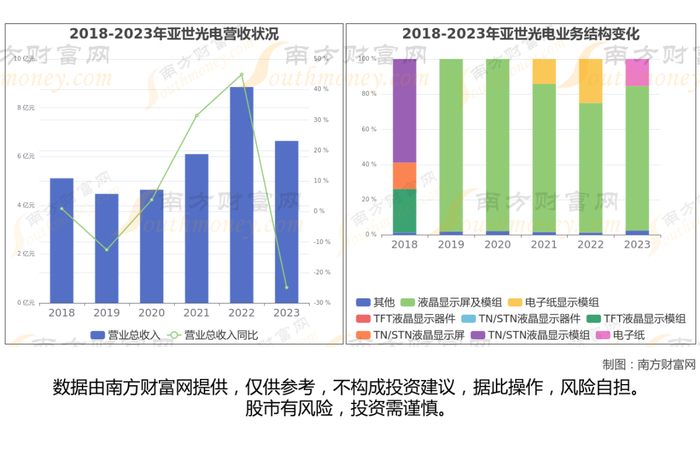 亚世光电于2019年3月28日在深圳证券交易所上市,股票代码002952。公司主营业务为主要从事研发、设计、生产和销售定制化液晶显示器件及电子纸显示模组等光电显示产品。