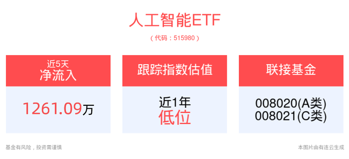 资金流入方面,拉长时间看,人工智能ETF近5个交易日内有4日资金净流入,合计“吸金”1261.09万元。