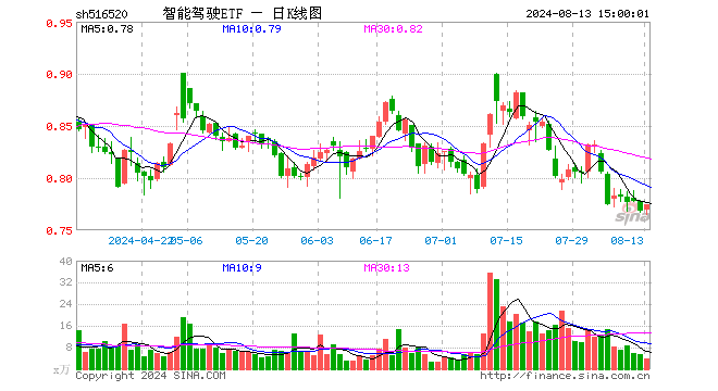 8月13日,智能驾驶(516520)收盘涨0.91%,成交额286.49万元。