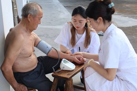 实践团在当地敬老院,养老院等开展中医药义诊服务活动。活动现场,前来体验中医药老人络绎不绝,学生们运用所学的中医药知识,为老人们提供量血压、测血糖、健康咨询等基础医疗服务,并根据老人们的身体状况,给予个性化的中医养生建议。此外,他们还为老人们表演养生操、讲解中医保健知识,让老人们在享受健康服务的同时,也能感受到来自社会的关爱与温暖。