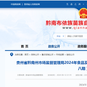 贵州省黔南州市场监督管理局2024年食品及食用农产品监督抽检结果信息公示(第八期)