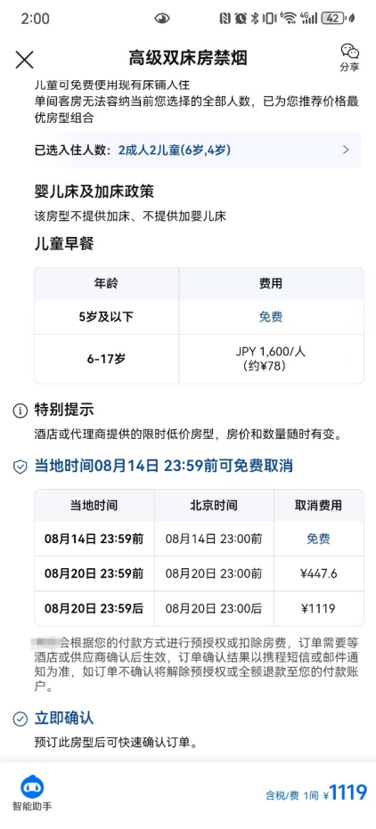 暑假兴致勃勃计划带一家子赴港旅行的王小姐,近日却被两大两小的高昂酒店费用急昏了头。入住当天,王小姐的小孩突然生病,无奈只能取消出游计划,紧急联系酒店告知原因后希望能申请无损取消,但由于香港酒店取消政策非常严格被酒店拒绝,导致直接损失两千多人民币。