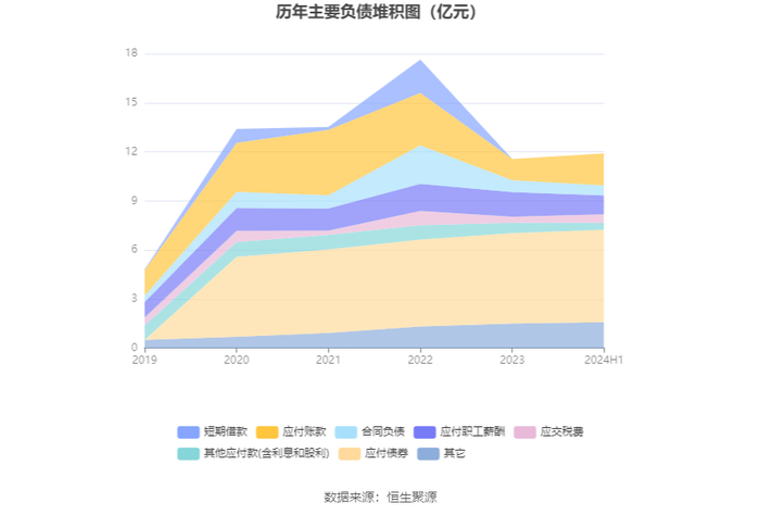 2024年上半年,公司经营活动现金流净额为2.00亿元,同比增加2.95亿元,主要系由于上期支付的到期供应商货款金额较大所致;筹资活动现金流净额4.95亿元,同比增加8.78亿元,主要系由于本期募集资金到账所致;投资活动现金流净额-11.44亿元,上年同期为3.51亿元,主要系由于本期购买理财产品金额增加所致。