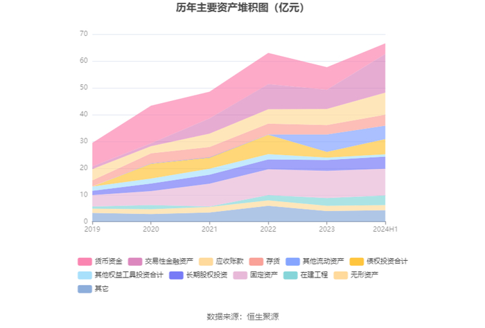 资产重大变化方面,截至2024年上半年末,公司交易性金融资产较上年末增加100.24%,占公司总资产比重上升9.19个百分点;货币资金较上年末减少53.16%,占公司总资产比重下降8.65个百分点;债权投资合计较上年末增加166.07%,占公司总资产比重上升4.83个百分点;其他流动资产较上年末减少23.68%,占公司总资产比重下降3.82个百分点。