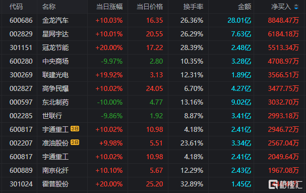 今日龙虎榜净买入额前三为金龙汽车、星网宇达、冠龙节能,分别为8848.47万元、6184.18万元、5513.34万元。