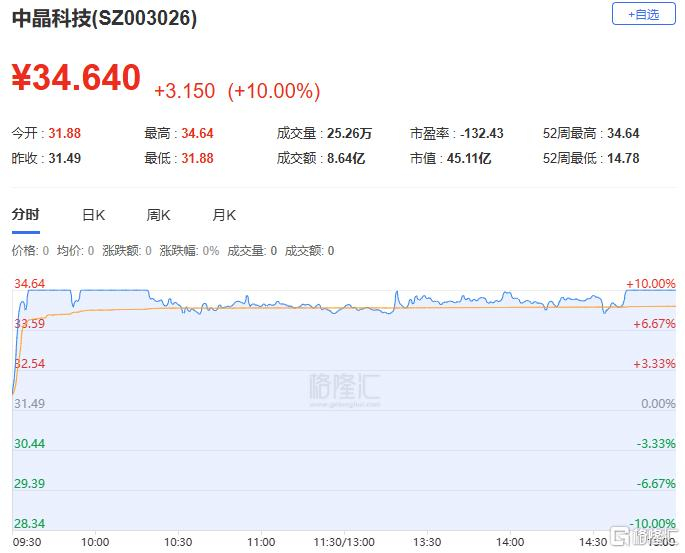 章盟主:净买入中晶科技1693.25万元
