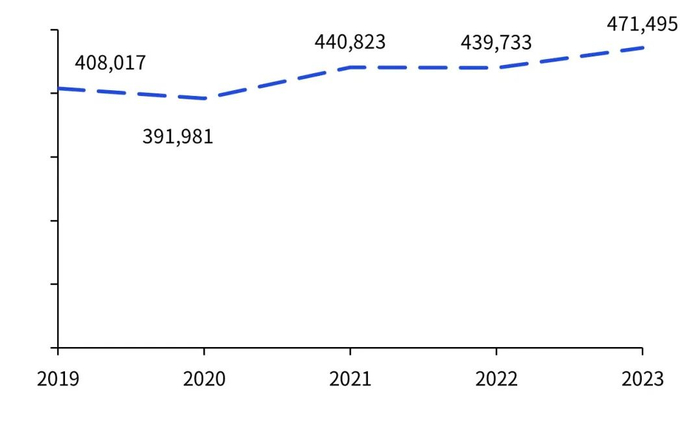 中国社会消费品零售总额,2019-2023,人民币亿元
