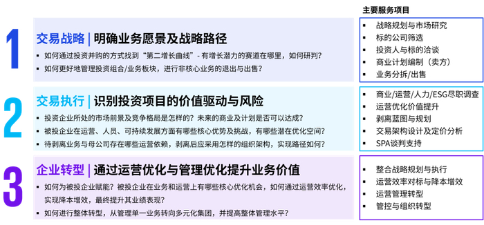 当此情形,消费品零售企业为了维持盈利水平与公司价值,需要重新进行业务定位与战略调整,剥离与自身核心业务协同较差、出现增长或盈利问题的业务,确保拥有正确的业务组合,短期止血,同时能够将资金投入在核心业务的发展或者具有潜力的新业务领域, 在长期优化盈利水平与股东回报率。