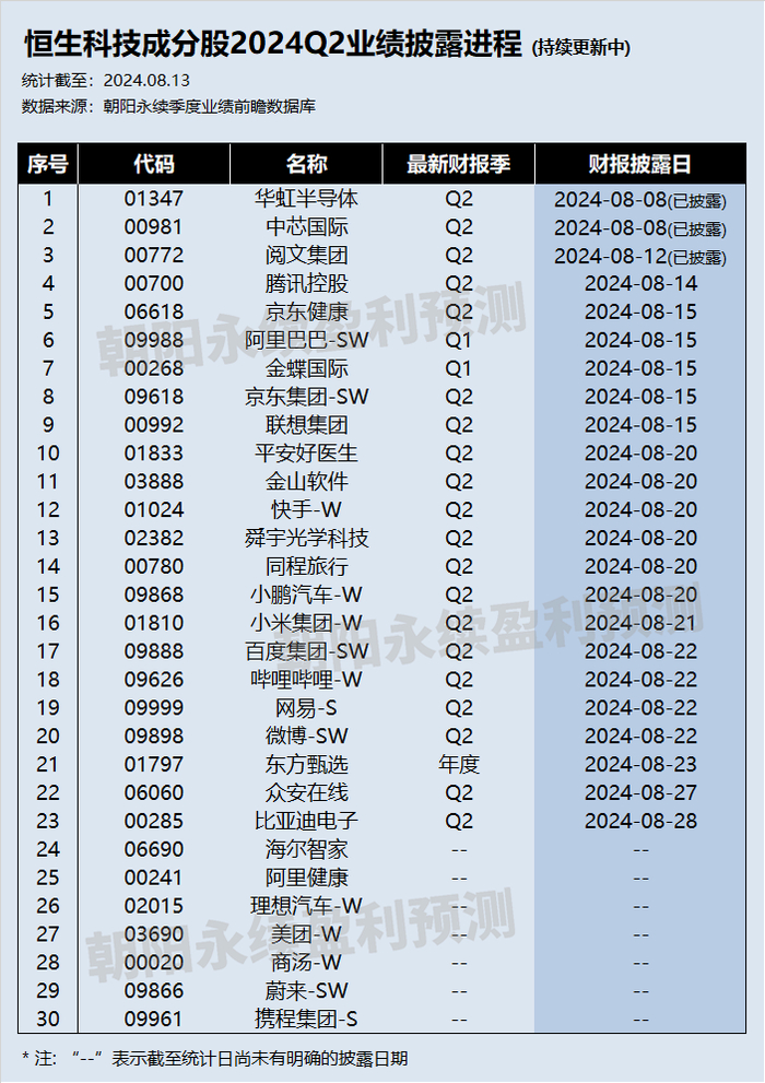 关注15日财报数据披露后能否超预期,朝阳永续港股季度业绩前瞻数据将为投资者提供业绩鉴定。