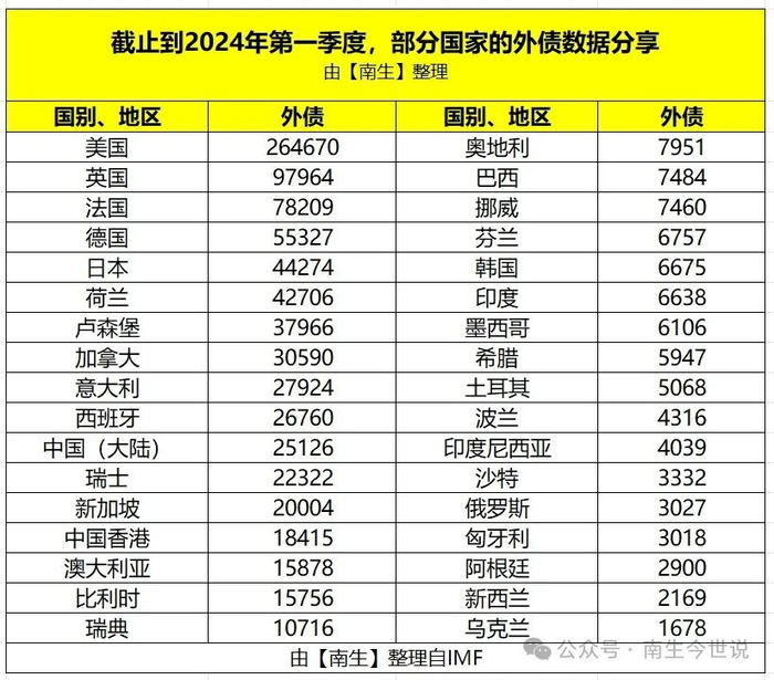 中、美、俄、乌、印、英、法、德、日、阿根廷等国外债有多少呢?