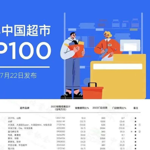 中国连锁经营协会发布《2023中国连锁TOP100》显示,2023年,超市TOP100企业销售规模为8680亿元,门店总数2.38万个,同比分别下降7.3%和16.2%。