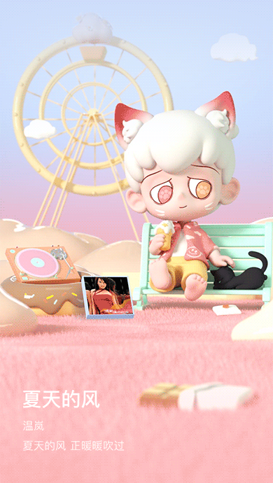 "猫猫约会日"形象源自潮玩品牌顽客潮集热门IP:EMOR--孤独的小孩。他以不同的身份行走于平行宇宙,追寻爱的真谛,这次和EMOR一起来到充满爱恋和猫咪的世界,感受甜甜的夏日晚风吧~