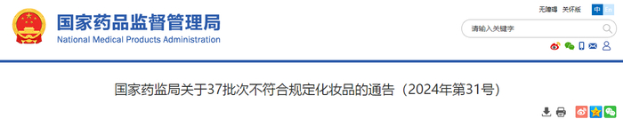 国家药监局关于37批次不符合规定化妆品的通告(2024年第31号)