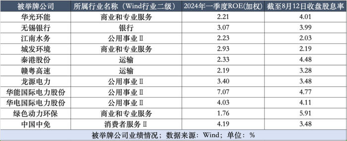 Wind数据显示,上述被举牌公司一季度ROE普遍低于5%,仅华能国际电力股1家公司为7.07%。
