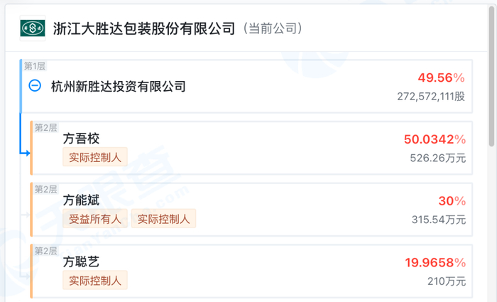 据财联社报道,大胜达为典型家族企业,方氏家族在董事会中占据三席,并通过杭州新胜达投资持有公司49.56%的股权,牢牢掌控着上市公司。其中,现年75岁的方吾校担任董事,现年47岁的方聪艺为公司董事兼总裁,从职位安排上看,董事长方能斌无疑为管理层核心,此次突遭留置对公司的影响不言而喻。