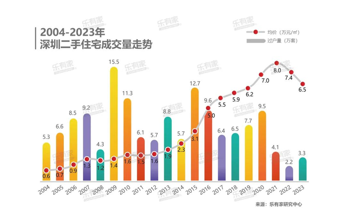 2017年是深圳楼市调整之前二手房过户量最低的年份,6.4万套,平均每个月5333套。