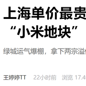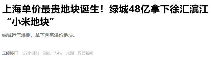 4个月后的8月份,上海又诞生了全国最贵的单价地王。
