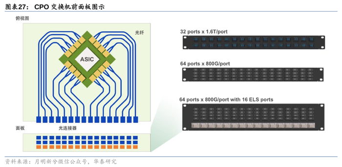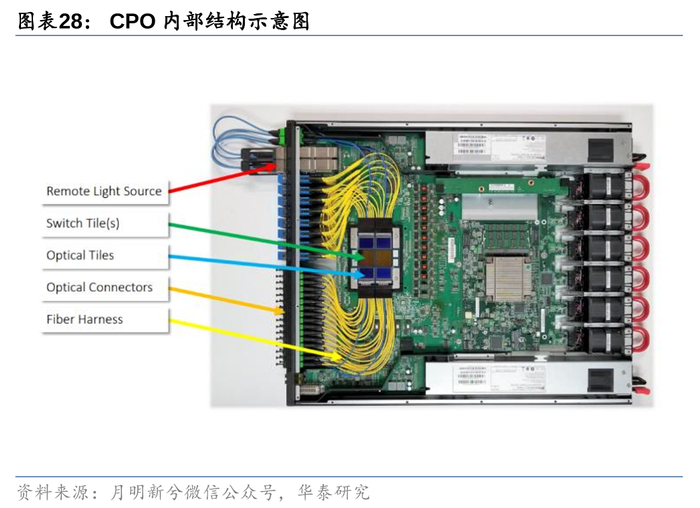 长期来看,CPO有望成为数据中心光电技术领域重要的发展趋势之一。常规交换机内部以电信号传输为主,故交换机内部无光纤部署的需要;而CPO交换机内部由于有光信号的传输,所以需额外增加光引擎到交换机机箱前面板的光纤连接器。考虑到机内布线复杂度以及前面板容量的限制,CPO内部光路或以MPO承载,由此为MPO市场需求带来新的增量。考虑到CPO内部的光引擎通常采用硅光方案,硅光波导对输入光具有偏振敏感性,故当采用外置光源方案时,我们预计CPO机内或将引入保偏型MPO方案,从而为MPO市场带来更高的产品价值量以及行业技术门槛。
