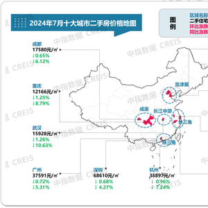 最新!2024年7月十大城市二手房房价地图