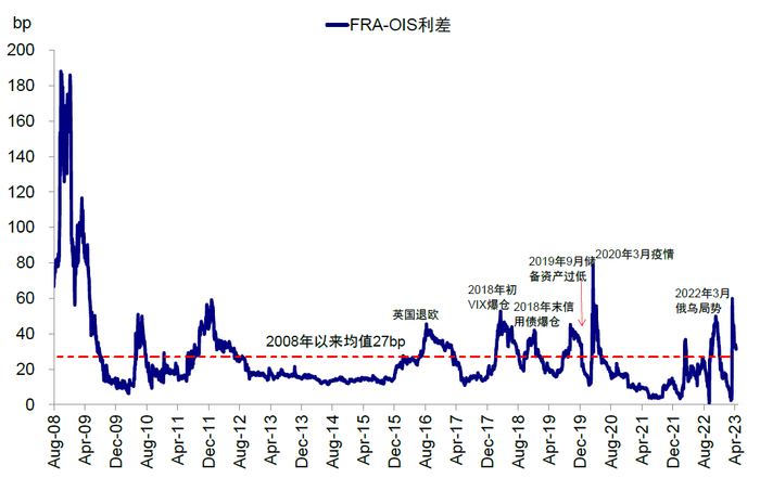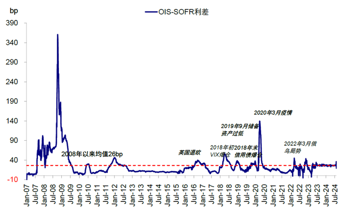 图表19:历次流动性事件中OIS-SOFR利差明显抬升