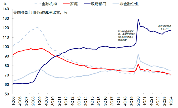 ► 企业和居民部门:1)2008年资产负债表衰退压力。房地产泡沫破裂导致私人部门资产大幅缩水,美联储推出定期资产支持证券贷款工具(TALF)支持信贷流向消费者和企业,刺激消费促进复苏。2)2020年疫情冲击实体经济,非金融企业现金流紧张和融资条件大幅上升。美联储通过一系列非常规性政策工具,直接购买投资级债券和相关ETF帮助市场企稳,向中小企业提供短期流动性支持以促进经济修复。