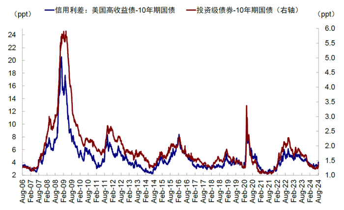 近期日元套息交易逆转引发的全球市场动荡提醒我们,波动与风险从未远去。在经济周期尾声与降息周期初期,也是增长放缓与货币政策“青黄不接”的时候,往往易发波动,近期美国衰退担忧再起也加大了市场对美联储应对过晚的担忧,再加上情绪与交易因素,更容易引发动荡。2023年初硅谷银行和2022年底英国养老金风波的“虚惊一场”还历历在目,2020年疫情和2008年金融危机更是重创了全球经济和金融体系,但也有类似2018年底信用债和市场大跌、2019年底准备金紧张的“小波折”。