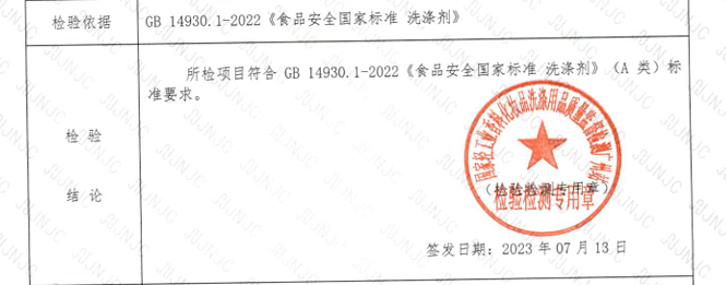 作为一个洗涤剂,竟然还通过了A类食品安全国家检测!