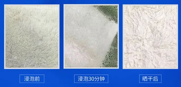 这些小气泡能够深入织物纤维的微小缝隙,与各种污渍反应,使其分解、剥离、脱落,最后随水冲走。