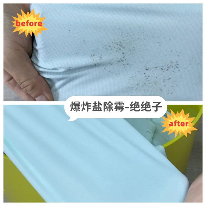 除了很强的去污能力,爆炸盐还自带抑菌效果,衣物上的霉菌都能轻松消灭。