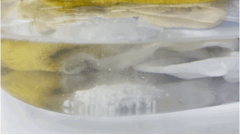 只需在爆炸盐水里泡20min左右拿出,即可见证奇迹时刻——轻轻一抹,污渍直接消失不见!