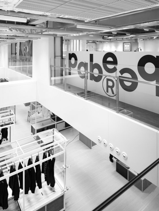 导视牌平行于棚顶,需要仰着脖子看,打破了常规导视的样式。扶梯只上不下,通过高楼层动线引流方式把客人往高层引。7楼设有烘培区,餐饮空间相对较少,更多空间被赋予了零售品牌或顾客遐想。这种反传统商业的设计,正在尝试换一种新型的模式,切入到消费者的购物习惯中。虽然需要一定时间的沉淀,但上海这座城市的包容性为各种商业理念和模式提供了存在的空间。