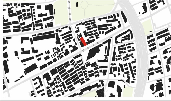 本项目位于淮海中路与成都南路交汇处。建筑物整体呈“梯型”,南侧与淮海路平行,东、西两侧与成 都南路平行。北侧与成都南路垂直。 建筑高度:建筑物为平屋面,消防高度31.20米 建筑面积:大楼占地面积为825.05㎡,建筑面积共7157.91㎡。