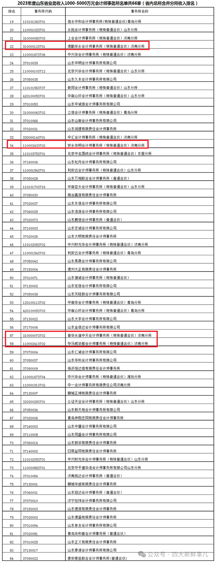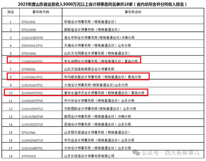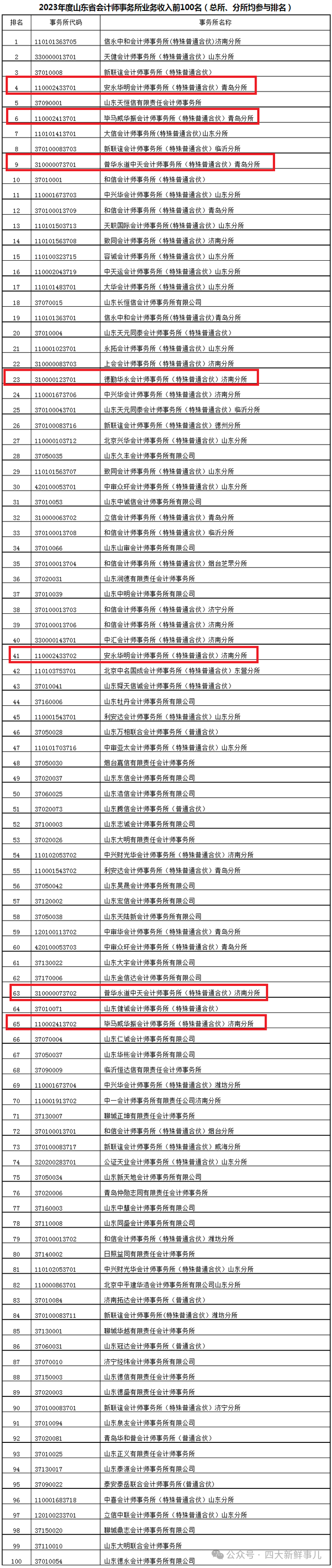 “四大”均上榜!山东省2023年会计师事务所业务收入100强公布