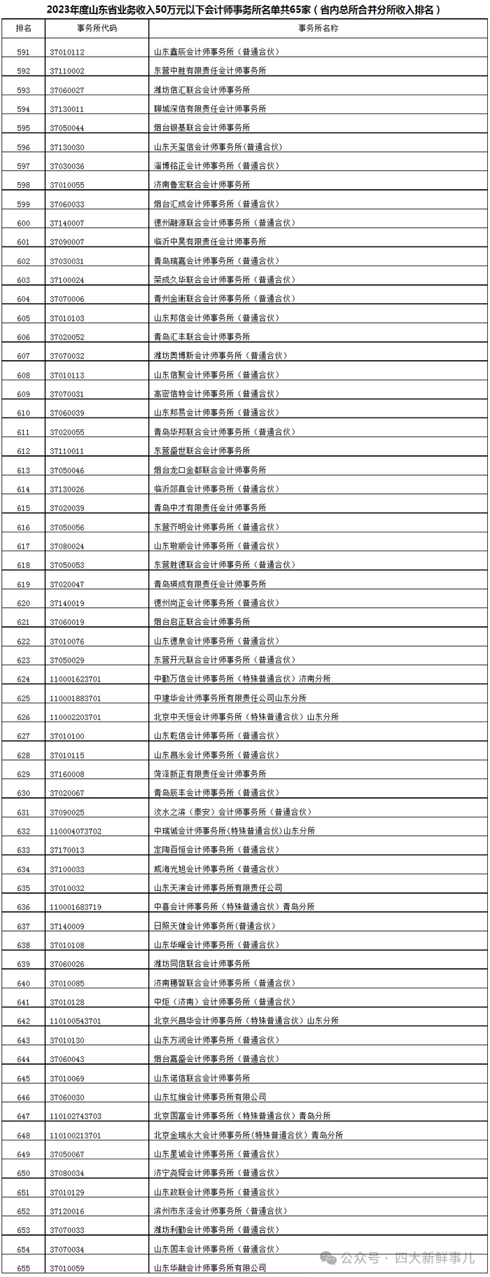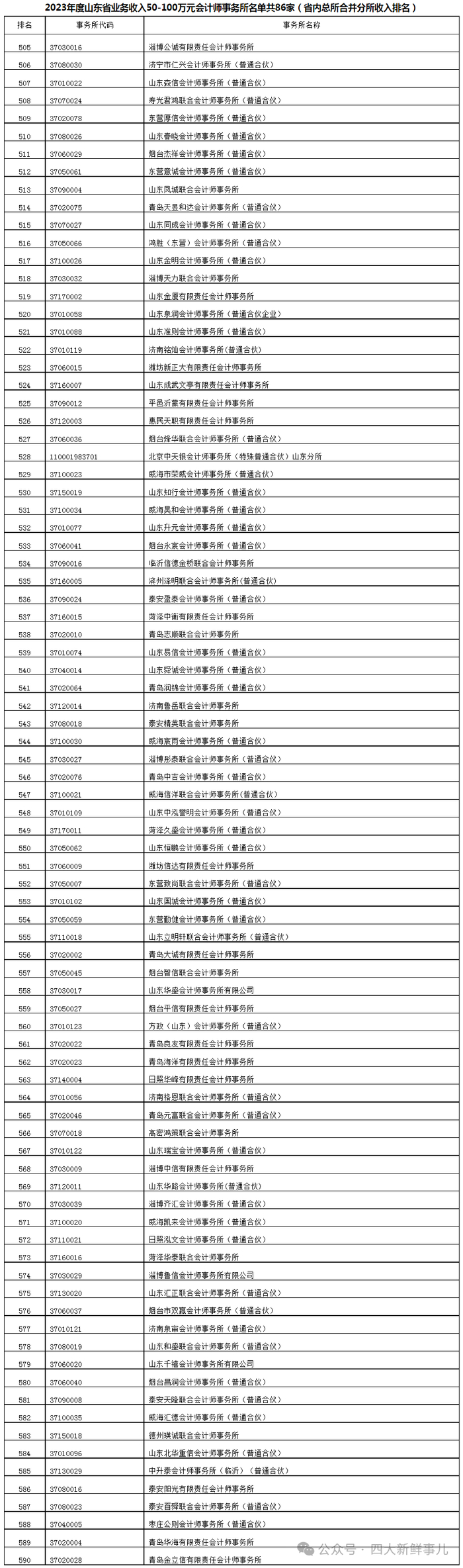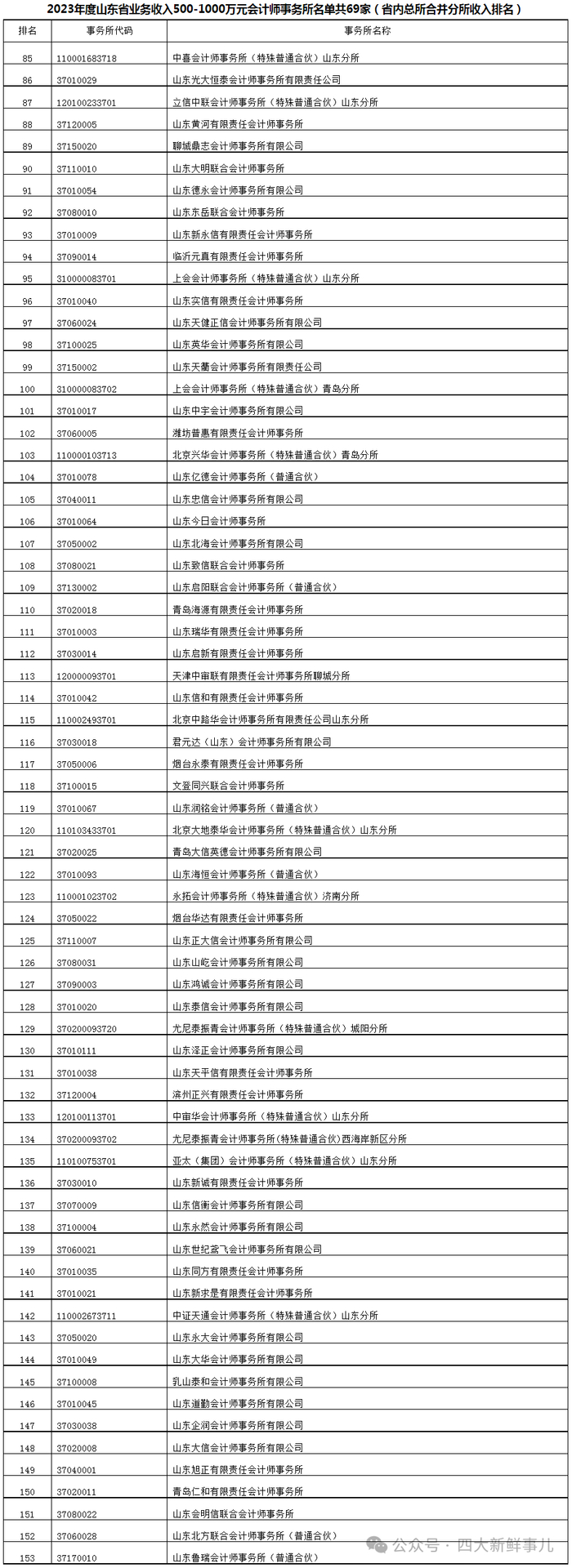 “四大”均上榜!山东省2023年会计师事务所业务收入100强公布
