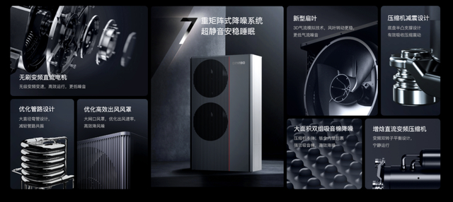 高效热泵回收存储技术,确保设备在-30℃至50℃的超宽环温范围内稳定运行,无论是严寒还是酷暑都能提供高效稳定的冷暖供应。