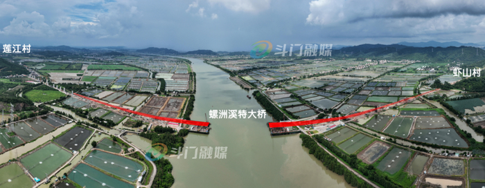 日前,位于斗门区白蕉镇莲鹤大道螺洲溪特大桥项目施工现场,机械轰鸣,工人有序作业,一派热火朝天的繁忙景象。