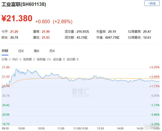 今日,“果链一哥”工业富联一度涨超5%,截至收盘,涨2.89%,该股今日在市场的人气值飙升。