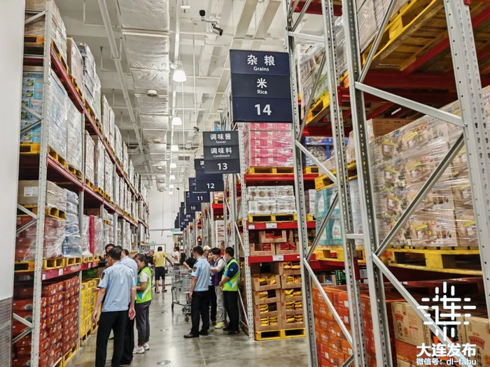 在大连山姆会员店,监管人员现场检查了在售的米面粮油、肉蛋菜奶等商品储存情况。据悉,汛期该店在保证民生商品日常销售的同时,订货过程中使用物流周转及时补充货量,达到安全库存,以应对紧急情况。