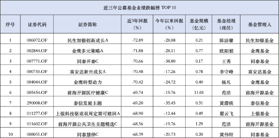 盘点公募近三年业绩跌幅:同泰基金两只产品上榜,同泰开泰混合近三年跌幅达70.66%