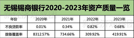 同样,作为新成立的银行,锡商银行在拨备率上保持在高位。2020-2023年,无锡锡商银行分别达到8312.57%、734.66%、309.92%、419.91%。拨备覆盖率是指银行对贷款损失准备金的提取比例,反映了银行的风险管理能力和资产质量水平。一般来说,拨备覆盖率越高,说明银行对风险的防范能力越强,资产质量也越好。