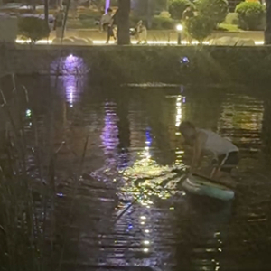 晚上8点半,朝阳区亮马河上夜色渐浓。影影绰绰的水面上,接连传来两声“扑通”声,只见桨板上有两人接连落水,挣扎了一会儿,两人好不容易爬回板上。距离落水地不远处,市民刘女士带着两个未成年的孩子也在夜划皮划艇,眼见有人落水,她并没感觉到危险的存在。