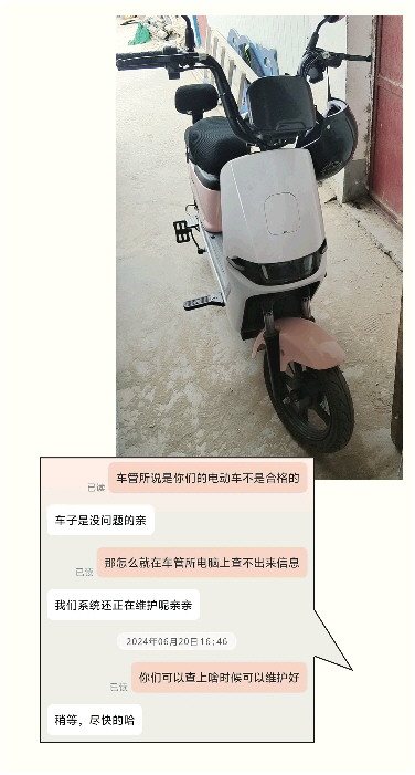 本想着车辆合格证、发票等证件齐全,电动自行车的车牌可以轻松办理下来,让程先生想不到的是,当地车管所工作人员并未在系统中查询到其所购买的电动车信息,因此不能挂牌。