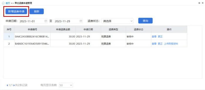 系统控制不同应征凭证种类不可一起发起退费,增加控制一笔申请中只有一个应征凭证种类(如单位日常申报表、特殊缴费申报表),缴费人可先选择需要提交退费的应征凭证种类。