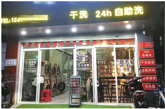 但在长堽村西路,距离一间共享洗衣房约200米,有一家自助洗衣洗鞋店与其他洗衣房风格明显不同。这家店店面整洁、宽敞,店里提供的均是比较高档、崭新的洗衣机,其中还有滚筒洗衣机。洗衣价格相对较高,8公斤洗衣机清洗20分钟费用为5元、清洗35分钟费用为10元;20公斤洗衣机清洗50分钟费用为25元……店里除了可以自助烘干,还提供玩具清洗、皮包护理等服务。此外,鞋子也有专门的清洗机器。消费者在等待洗衣的时间,还可以在阅读区看书。
