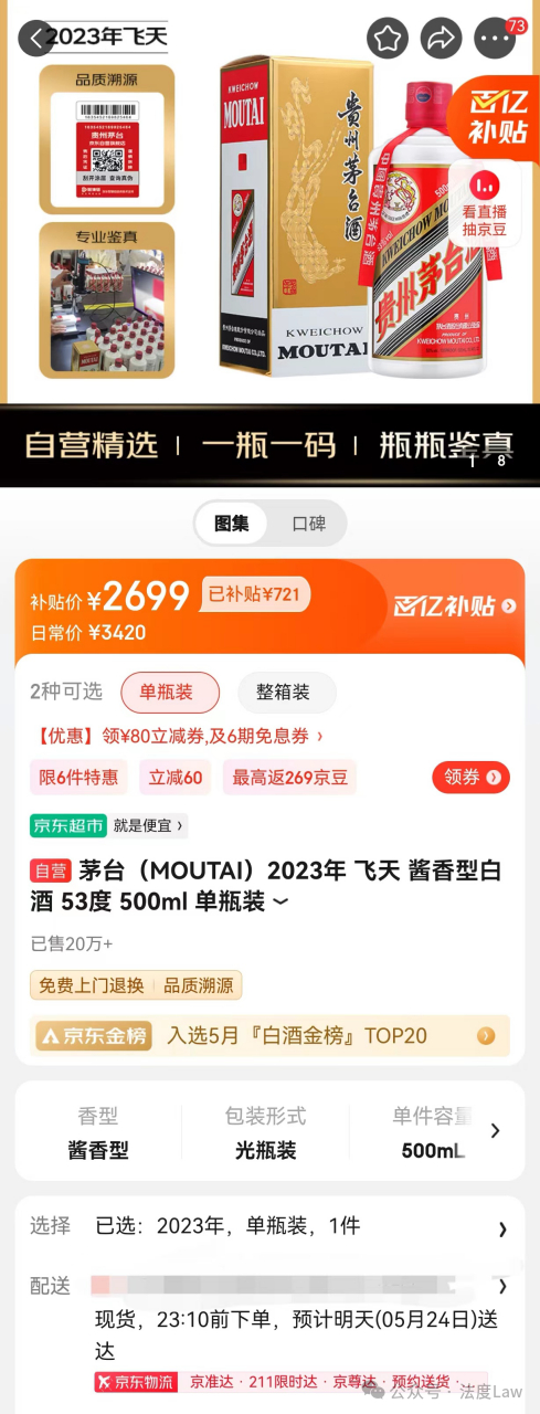 为何某东app上,“茅台2023年飞天酱香型白酒53度500ml单瓶装”的“日常价”显示为3420元?百亿补贴究竟是不是真补贴?