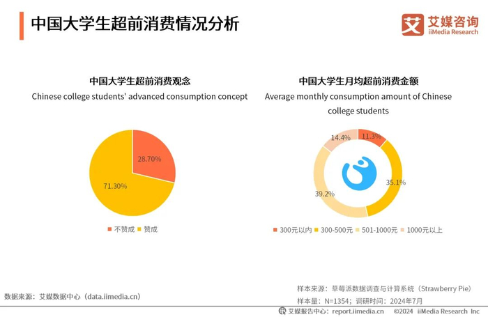 iiMedia Research(艾媒咨询)数据显示,有71.3%的大学生赞成超前消费。在有超前消费行为的大学生中,有39.2%的受访者月均超前消费金额在501-1000元。艾媒咨询分析师认为,大学生对新鲜事物的接受能力较强以及大学生消费需求的增加,普遍对超前消费的行为持认可与理解的态度。虽然超前消费可以在一定程度上缓解当前的资金压力,但也容易陷入消费陷阱。大学生群体应树立正确消费观,花钱需“三思”而后行。